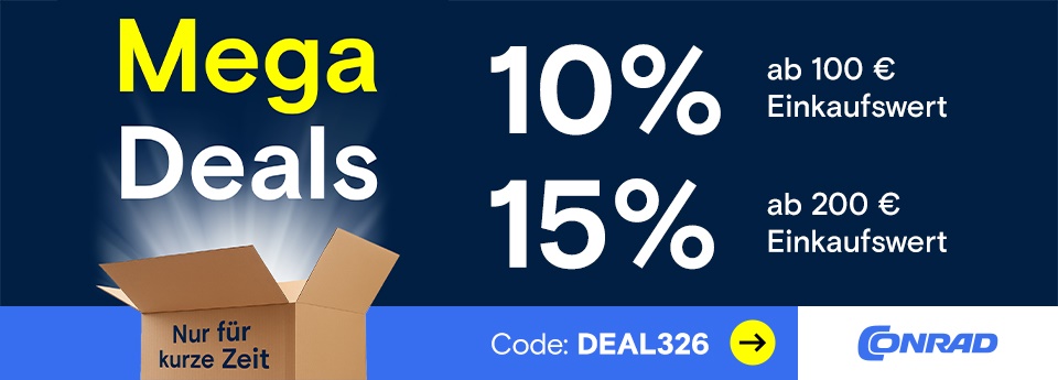 Seien Sie gespannt, denn es erwarten Sie traumhafte Urlaubsziele zu Schnäppchenpreisen: Top-Angebote in Spanien, der Türkei und Griechenland warten auf Sie. Sichern Sie sich jetzt die besten Angebote bei sonnenklar.TV . Buchbar vom 14 März bis inkl. 25. März. Schnell sein lohnt sich!Conrad Mega Deals, bis zu 15% sparen mit dem Code DEAL326. 10 % Rabatt ab 100 € brutto bzw. 15 % Rabatt ab 200 € brutto Einkaufswert.